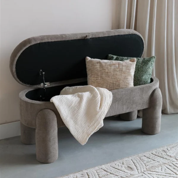 Mais ce n’est pas tout : son assise se soulève pour révéler un espace de rangement discret, parfait pour accueillir plaids, coussins ou petits objets du quotidien. Pratique et élégant, ce banc trouve facilement sa place dans une entrée, une chambre ou au pied d’un lit.