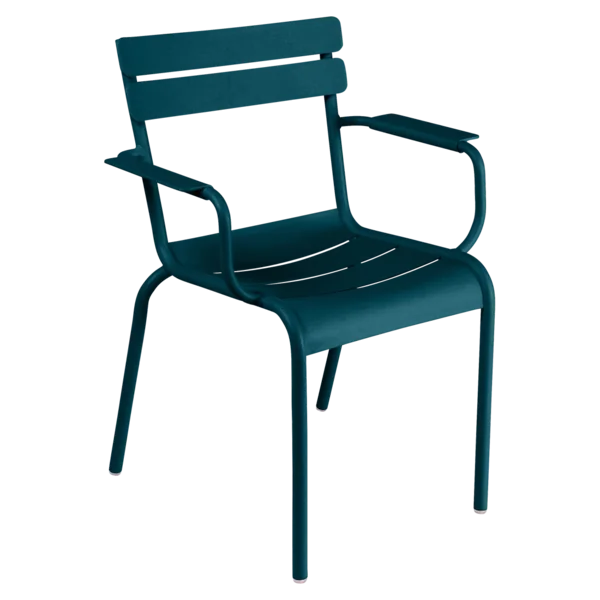 Fabricant de la chaise en métal qui trône dans les jardins du Luxembourg, Fermob demande, en 2004, au designer Frédéric Sofia de revisiter cette mythique chaise en un bridge accueillant et confortable. Le bridge est une chaise à laquelle on rajoute des accoudoirs pour accroitre encore plus le confort de l’assise. Ce fauteuil de jardin aluminium c’est tout l’esprit Luxembourg : prestance, finesse, modernité et charme des jardins parisiens. Des invités inattendus ? Un repas impromptu ? De jolis moments de convivialité en perspective… Un peu de couleurs, l’ajout d’une galette et nous voilà en train de rêver en écoutant les doux bruits d’été. Luxembourg regroupe toute l’expertise Fermob du mobilier outdoor : une structure légère et ultra résistante en aluminium, une peinture anti-UV pour un usage garanti même en bord de mer.