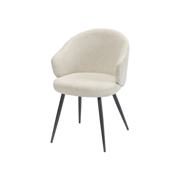 La chaise Cozy porte bien son nom : son revêtement en tissu bouclé doux au toucher, associé à une mousse dense, en fait un siège accueillant, parfait pour les longues soirées à table ou comme fauteuil d’appoint dans un coin lecture. Son design enveloppant et ses lignes arrondies apportent une touche contemporaine, tout en gardant une vraie chaleur visuelle. Son piètement en métal effilé souligne son allure légère et élégante.