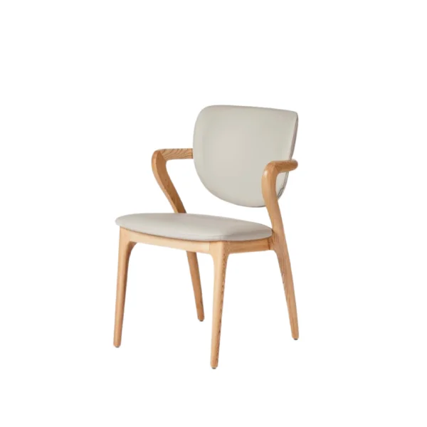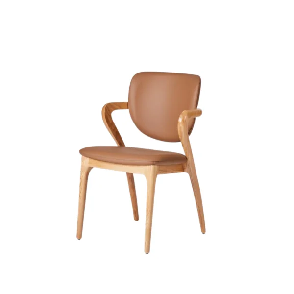 Son assise et son dossier généreusement rembourrés sont habillés d’un revêtement en simili cuir ou tissu, tandis que sa structure en bois massif ajoute une touche naturelle et chaleureuse. Les finitions soignées et les lignes sculpturales signent un style résolument contemporain.