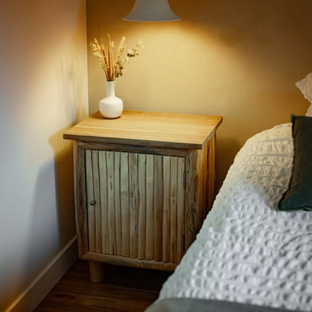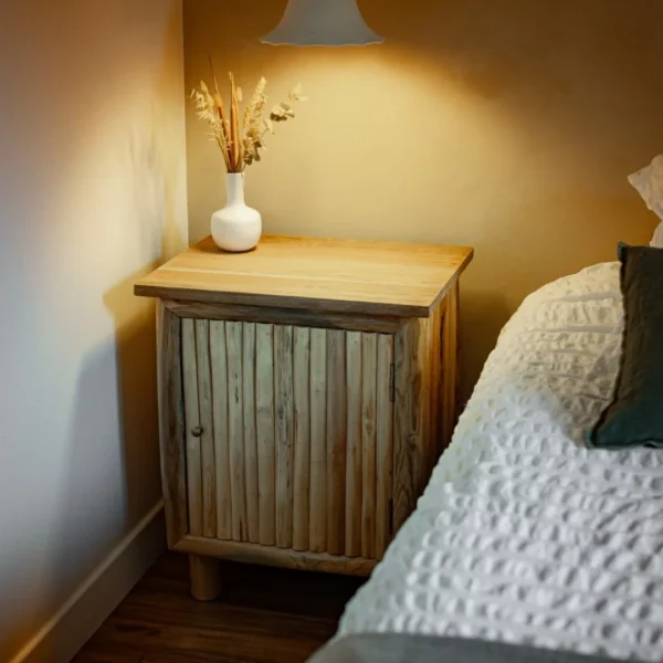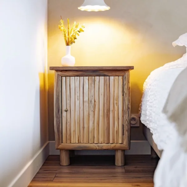 La table de chevet Pierrette est une pièce élégante et authentique, conçue pour apporter une touche de caractère à votre chambre.