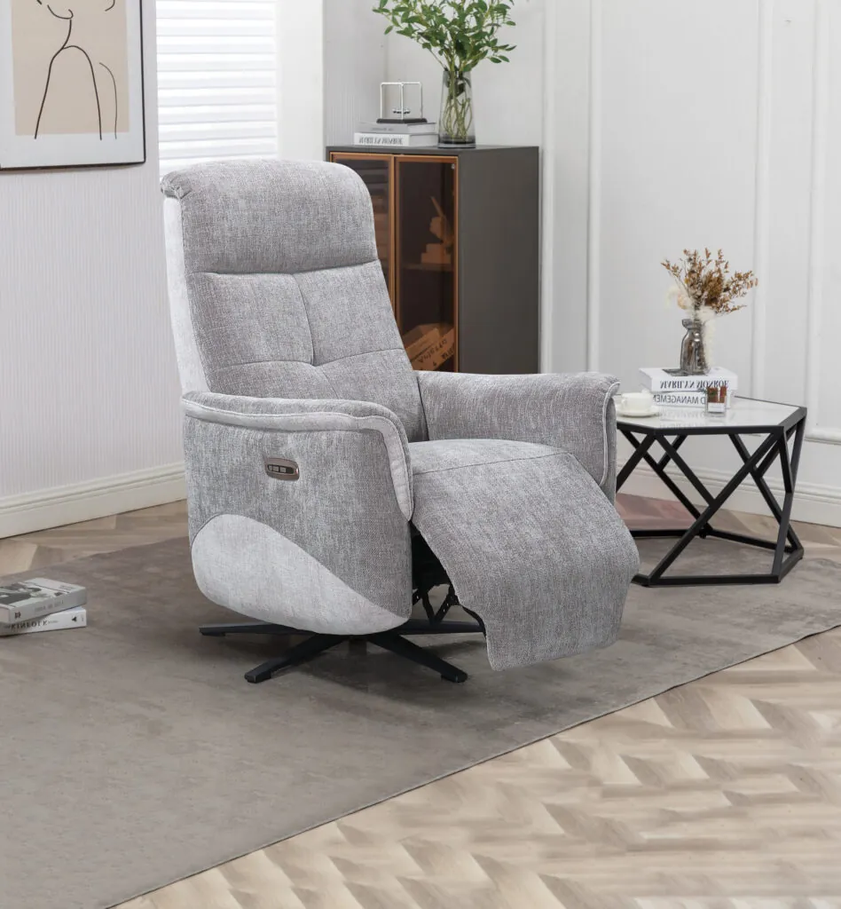 Grâce à son mécanisme 2 moteurs, le fauteuil pivotant Boréal saura répondre à toutes vos attentes de relaxation. Sa touche de remise à zéro permet un retour en position initiale en toute facilité. Muni d’une têtière ajustable, vous pourrez adapter vos instants de détente aux grés de vos envies. Vous pouvez assortir ce fauteuil avec l’ensemble salon Boréal, canapé 2 et 3 places à relaxation électrique, canapé 2 places fixes ou encore fauteuil 4 pieds fixe.