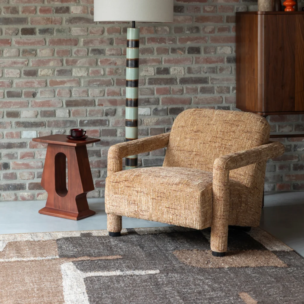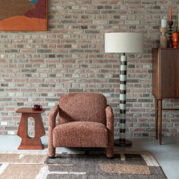 Ajoutez une touche de charme vintage à votre intérieur avec le fauteuil Kent. Parfait pour créer un coin lecture, compléter un salon ou accompagner une cheminée, ce fauteuil séduit par sa silhouette généreuse et son tissu texturé.