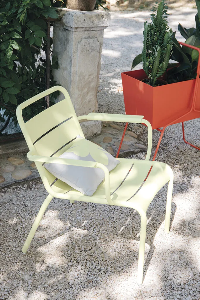Le Luxembourg lounge Fermob, un fauteuil de salon de jardin en aluminium résistant aux intempéries et aux UV. Une pièce de mobilier destinée à durer, durer, durer, même en bord de mer…