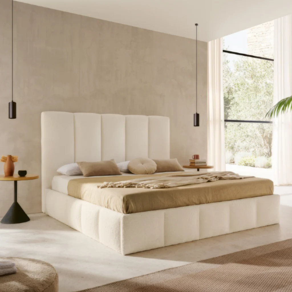 Le lit coffre Elba est une solution haut de gamme qui allie élégance, fonctionnalité et confort. Idéal pour optimiser l’espace dans votre chambre, il se distingue par ses finitions soignées et sa capacité de rangement généreuse.