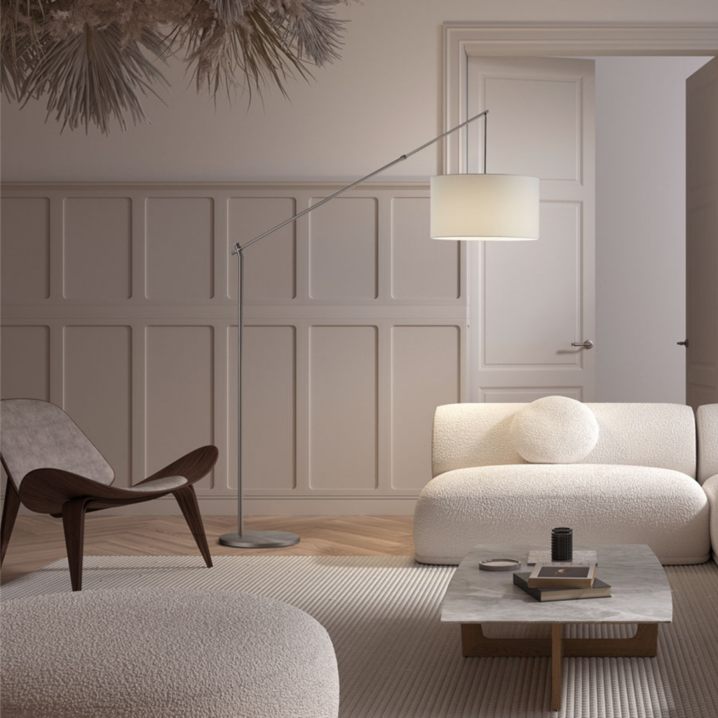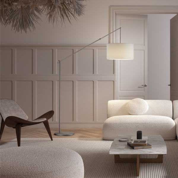 Ce lampadaire très fonctionnel est doté d’un bras extensible pouvant atteindre 2 mètres, idéal pour éclairer de grandes pièces avec précision. ALTISSIMA combine un design épuré avec un abat-jour et un pied ronds. Disponible en noir ou chrome, il s’intègre facilement dans tout type d’intérieur.