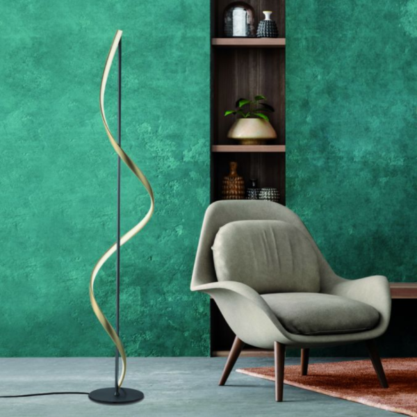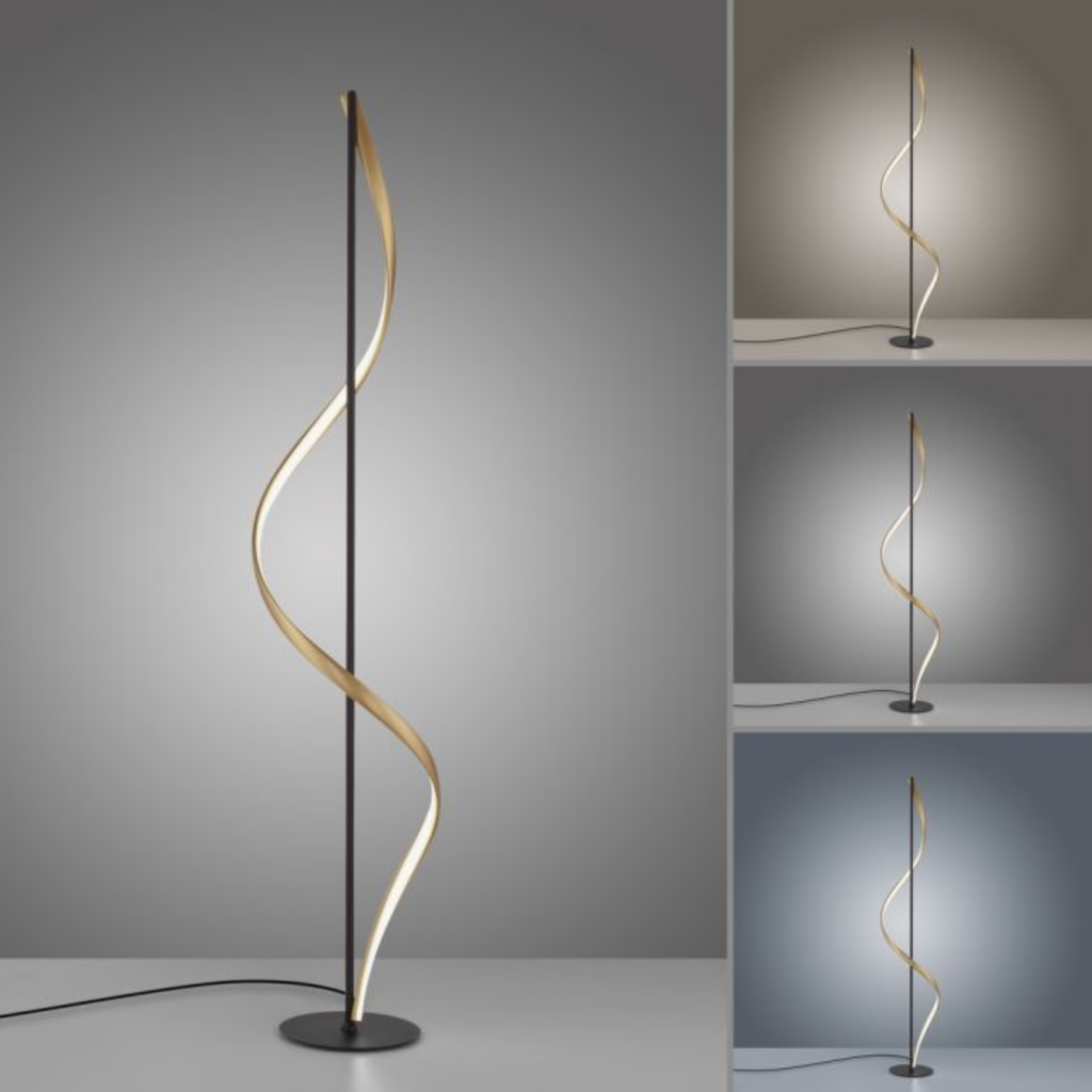 Le modèle Q-SWING séduit immédiatement par ses formes fluides et modernes, ainsi que par son association élégante d’anthracite et de laiton mat. Il est disponible en deux versions : plafonnier ou lampadaire, pour s’adapter à tous les espaces avec style.