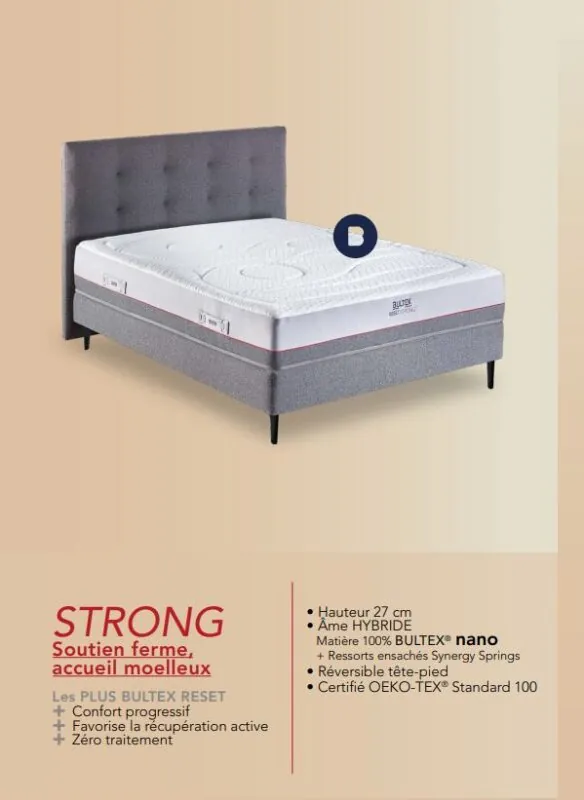 Le matelas Reset Strong de Bultex offre un soutien ferme et un accueil moelleux.