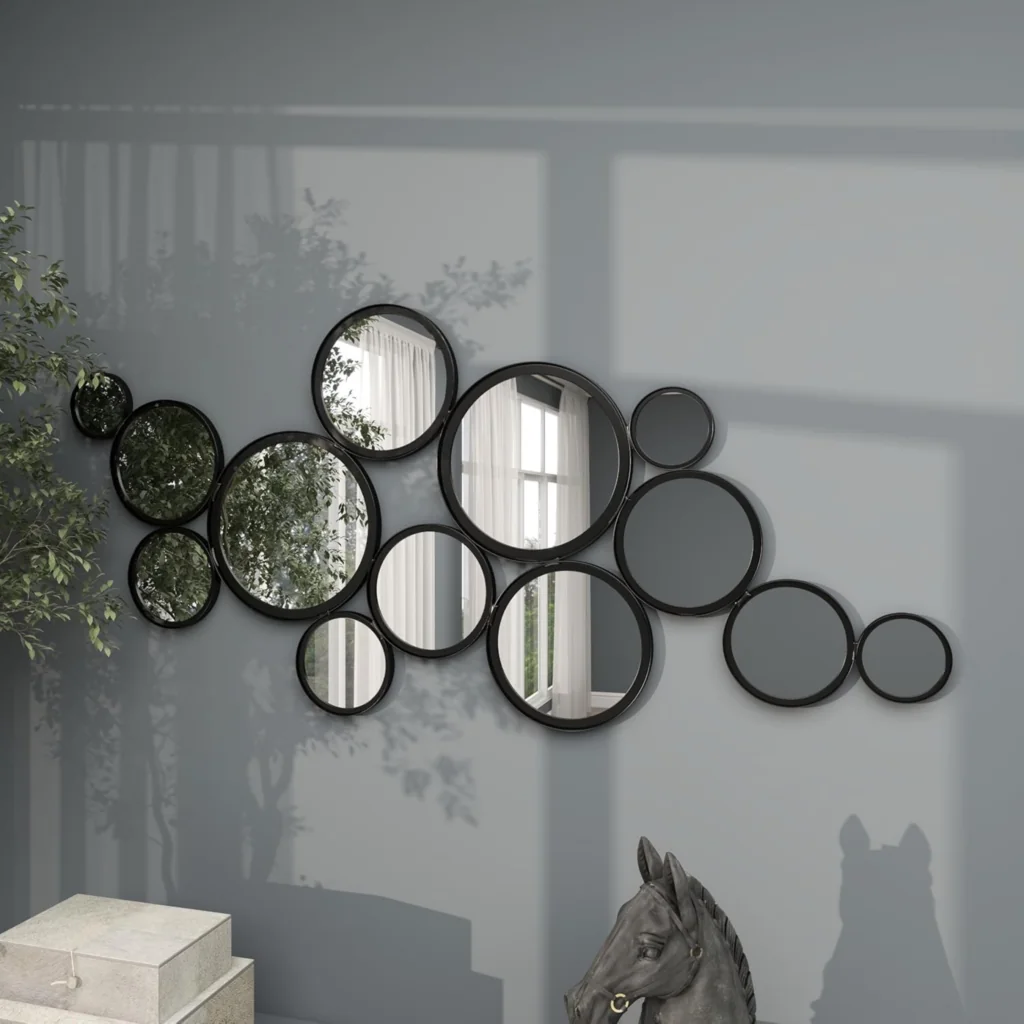 Sortez des sentiers battus avec le miroir mural CIELO et sa composition de cercles asymétriques ! Ce miroir original joue sur les formes et les volumes pour créer un effet graphique fort. Son design moderne, souligné par un cadre noir mat (ou doré selon la version), apporte une touche contemporaine et artistique à votre intérieur.
