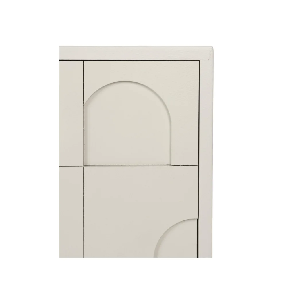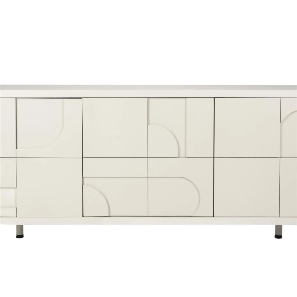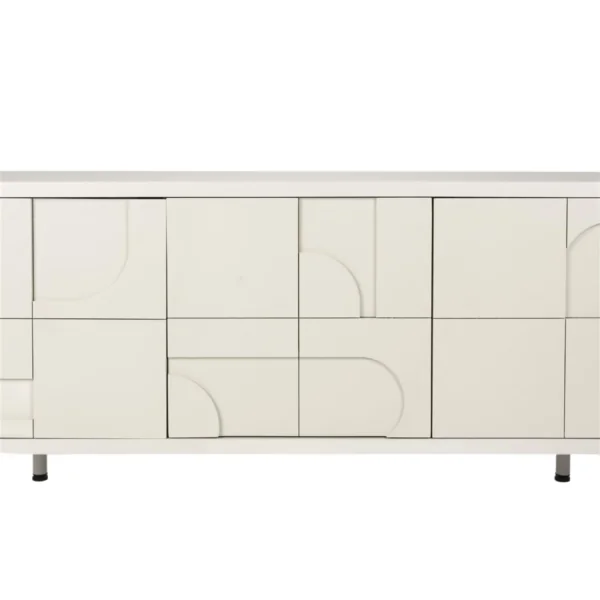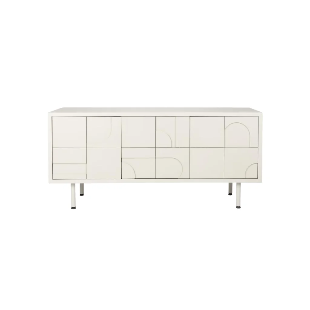 Avec ses motifs géométriques en relief et sa silhouette épurée, le Sideboard Funk incarne l’élégance contemporaine. Sa finition blanc cassé laquée et ses façades sculptées font de ce meuble un élément de caractère, aussi pratique qu’esthétique. Parfait pour habiller un salon ou une salle à manger, il allie design moderne et fonctionnalité.