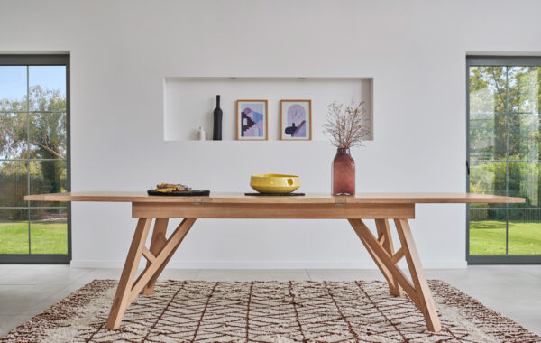 Le table Escale deviendra la pièce maîtresse de votre salle à manger grâce à ses pieds au design original. Elle est dotée d’une allonge centrale portefeuille qui vous permettra d’agrandir votre table en un tour de main !