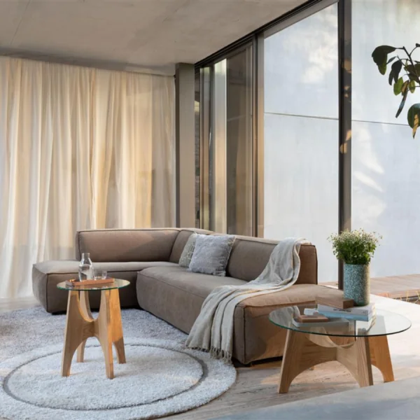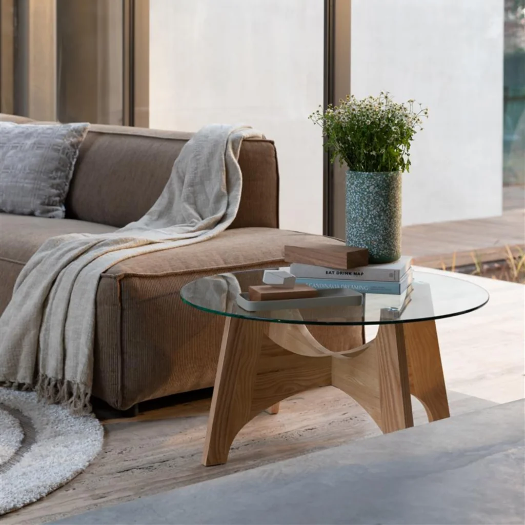 Avec son piètement arqué en bois de frêne, la table basse Kobe apporte une note graphique tout en finesse.