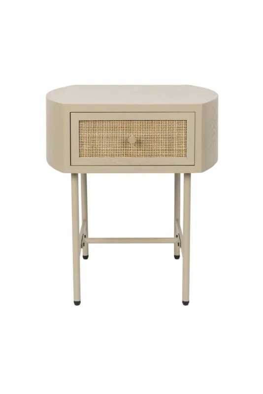 Avec sa silhouette arrondie, son coloris grège apaisant et son tiroir en cannage de rotin, la table Amaya joue la carte du style doux et chaleureux. Elle mêle matériaux actuels et inspirations naturelles pour une pièce à la fois décorative et fonctionnelle.