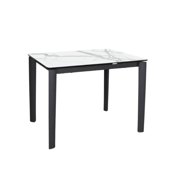 La table Jules séduit par son look résolument contemporain et ses finitions soignées. Son plateau en céramique (épaisseur 13 mm) collé sur un verre de 10 mm offre à la fois résistance, élégance et facilité d’entretien.