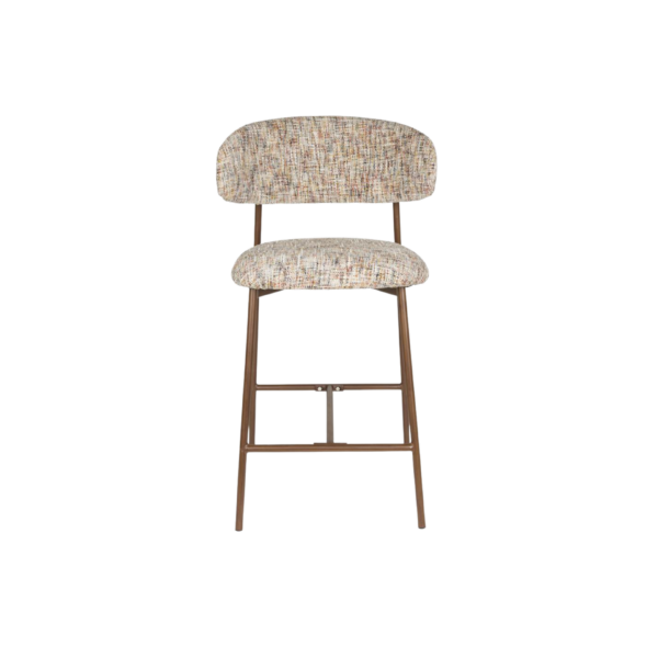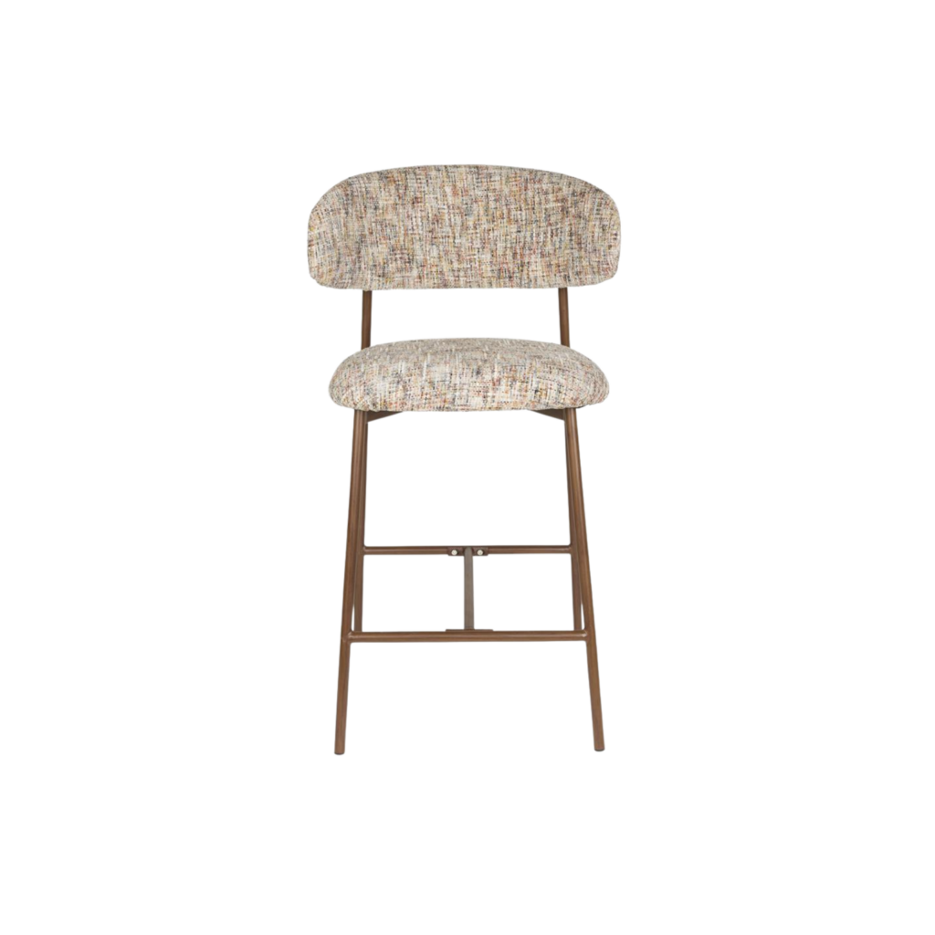 Apportez une touche vintage et chaleureuse à votre espace repas avec le tabouret de bar Claes. Son revêtement chiné multicolore, à la fois doux et texturé, crée un jeu de nuances subtiles qui attire l’œil.