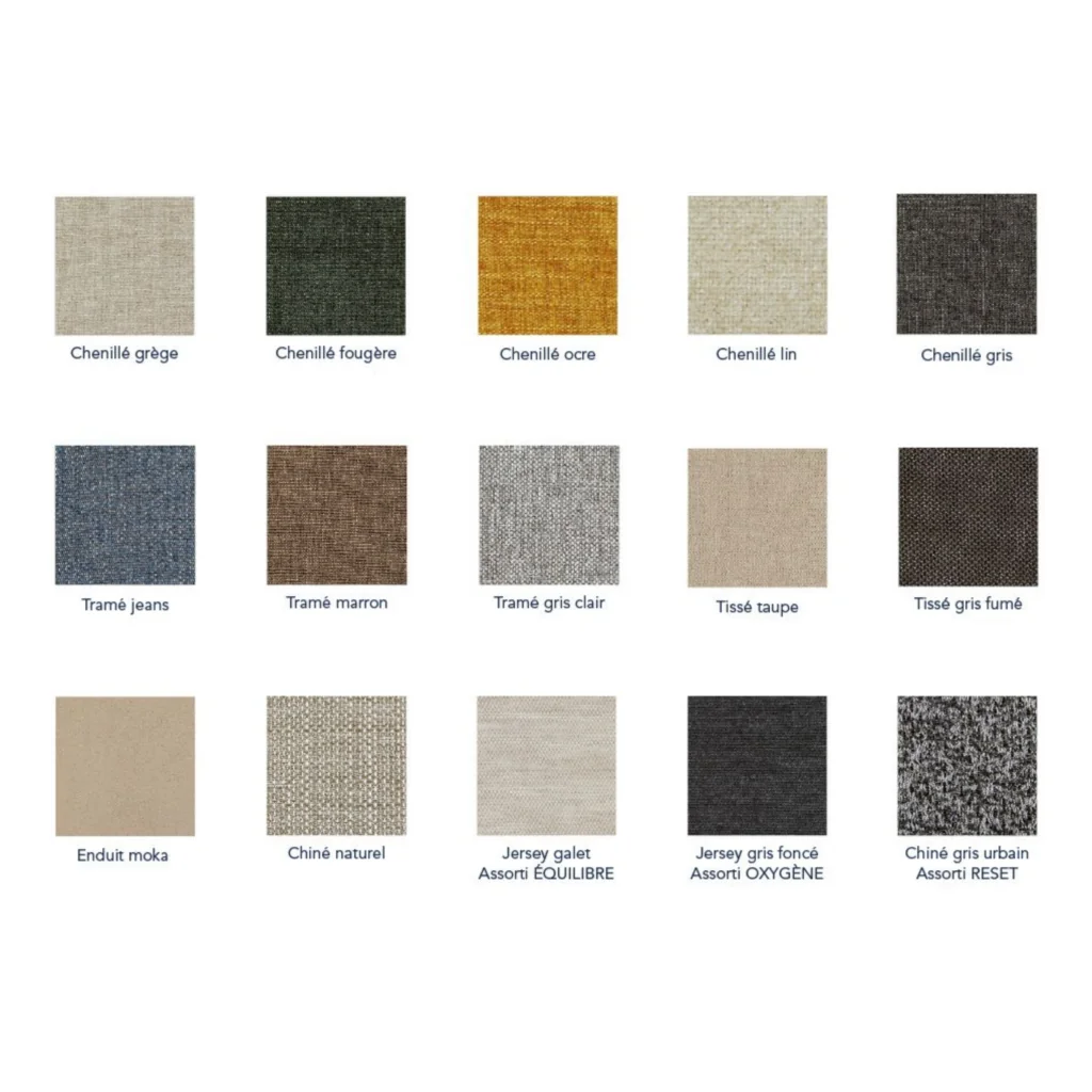 - Disponible en plusieurs coloris déco : Chenillé grège, Chenillé fougère, Chenillé ocre, Chenillé lin, Chenillé gris, Tramé jeans, Tramé marron, Tramé gris clair, Tissé taupe, Tissé gris fumé, Enduit moka,Chiné naturel, Jersey galet, Jersey gris foncé ou Chiné gris urbain